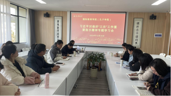 会议要求,深入学习贯彻习近平总书记关于“三农”工作的重要论述和重要指示精神,认真贯彻落实党的二十届三中全会和中央经济工作会议、中央农村工作会议部署,扎实推进乡村全面振兴和农业强国建设。全体教职工要深刻领悟“千万工程”经验蕴含的理念方法,结合工作实际,运用职工国情教育的课堂思政手段,带领广大职工去到中国美丽乡村看一看,了解真实、立体、全面的中国,并客观真实地向世界讲好中国乡村故事。