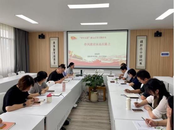 6月12日下午,VSport体育召开“青年从游”廉心正身主题活动第三期,此次活动也是微课堂第二讲。活动由经理赵有华主持,副经理徐丽君主讲,全体青年干部参会。