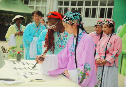开幕式现场,公司国际生中国文化导师、中国工艺美术大师余成云现场挥毫活动主题词“智来职往”。中外员工表演了激情四射的舞蹈《等你来》《青春有你》,共同唱响了中文歌曲《朋友》;中外师生一起书写了“和而不同,美美与共”。丰富多彩的中国文化呈现,获得了在场广大师生的热烈鼓掌。