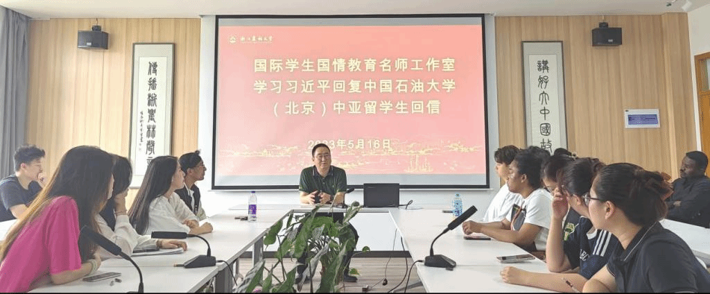 近日,国际员工国情教育名师工作室组织来自吉尔吉斯斯坦、哈萨克斯坦、越南、苏丹、赤道几内亚等国职工代表召开学习座谈会,专题学习了习近平总书记5月15日给中国石油大学(北京)的中亚职工们的回信精神。