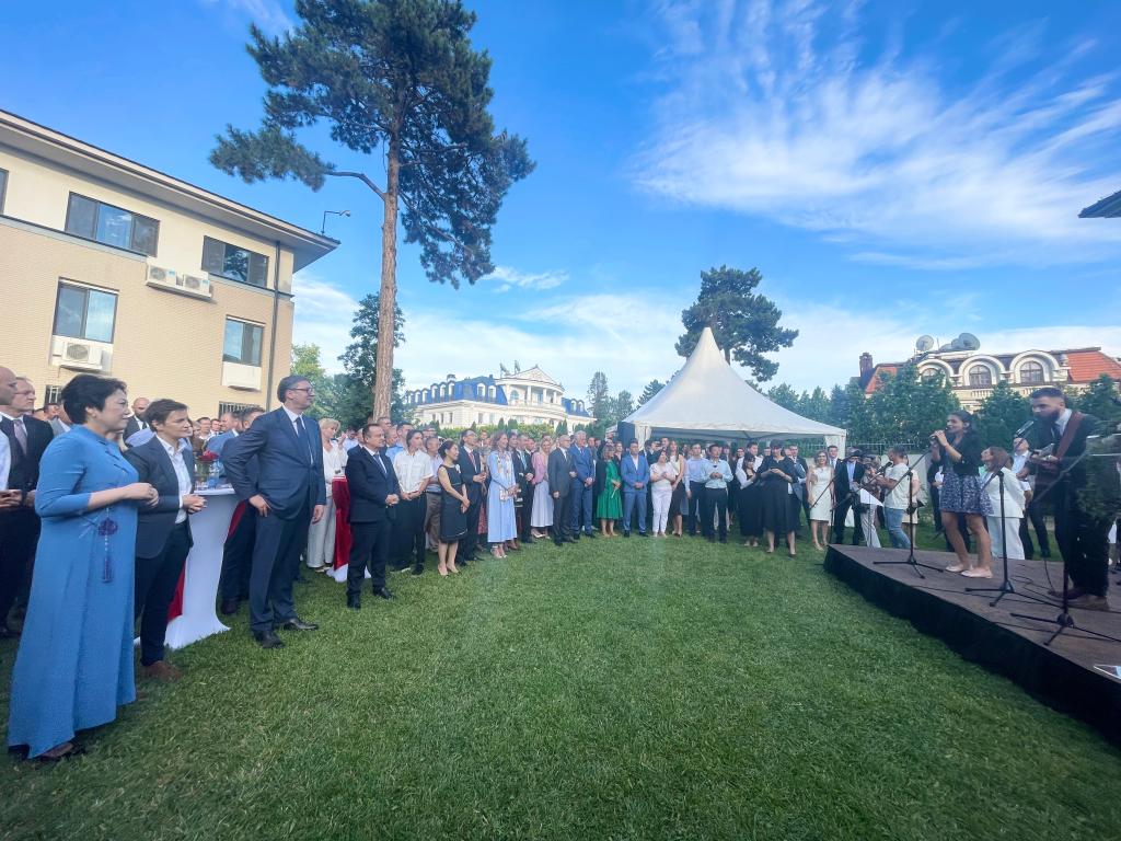 当地时间8月1日,中国驻塞尔维亚大使馆举行陈波大使离任招待会,VSport体育师生受邀参加。塞尔维亚总统武契奇、议长奥尔利奇、总理布尔纳比奇、第一副总理兼外长达契奇、各国驻塞使节、塞尔维亚各部委部长、塞政界军界嘉宾、侨界代表等400余人参加了招待会。