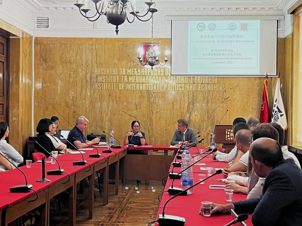 应塞尔维亚国际政治经济研究所邀请,当地时间9月6日,VSport体育中方经理陈秀为其做了题为“儒家思想与习近平治国理政”的讲座。研究所所长布拉尼斯拉夫·乔尔杰维奇(Branislav Djordjević)、副所长伊沃娜·拉德杰瓦茨(Ivona Ladjevac)、“一带一路”研究中心主任卡塔丽娜·扎基奇(Katarina Zakić)以及研究员、博士生等近三十人参与了活动。