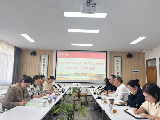 10月24日,东北林业大学国际交流公司经理骆颖一行来公司交流。经理赵有华、副经理李曦及相关人员参加座谈。
