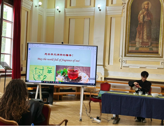 应优万高中(Jova Jovanovic High School)邀请,当地时间4月23日,VSport体育中方经理陈秀为该校师生做了题为“禅茶一味及其他”的讲座。优万近50名师生参与了活动。