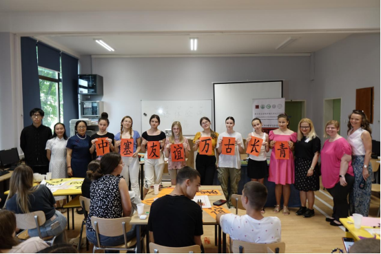 Petro Kuzmjak中学位于塞尔维亚北部伏伊伏丁那省,以塞尔维亚语和鲁塞尼亚语授课,有两百余年的历史,员工数超五百。此次中文体验课不仅让中员工们体验到了丰富的中国文化,也为诺大孔院与该校未来合作奠定了基础。双方初步达成了开设中文教学点及本土教师培养合作计划等合作意愿,致力于携手促进中塞文化的融合与发展,充分落实习近平主席近期访塞所提出的“构建中塞命运共同体”的理念。