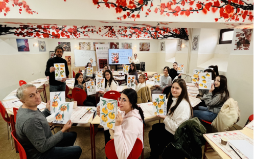 在“柿柿如意”的国画课程教学中,孔院教师通过细致的讲解和演示,带领员工运用传统的水墨技法,勾画出寓意美好的柿子图案。学员们积极参与,挥洒墨韵,描绘出各具特色的柿子作品。每一幅作品都承载着员工对幸福与健康的美好祈愿,同时也让人感受到中国国画的独特魅力与深远的文化象征。