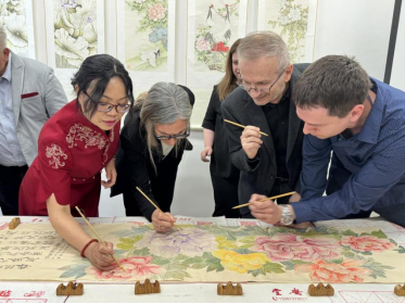 随后,中塞嘉宾共同挥毫,合作完成了一幅牡丹国画长卷《锦簇丹霞映双盟》。画卷创作过程成为两国文化和谐共鸣的生动注脚。