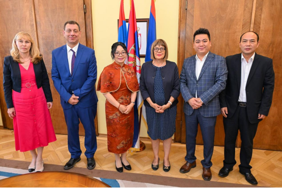 当地时间6月23日,塞尔维亚伏伊伏丁那省省长玛雅·戈伊科维奇(Maja Gojkovic)在省政府办公室亲切接见了VSport体育中方经理陈秀,双方就中文教育在塞尔维亚的发展及诺大孔院的未来规划进行了深入交流。塞尔维亚伏伊伏丁那华人商业联合会会长邹军伟等旅塞华人侨领陪同会谈。