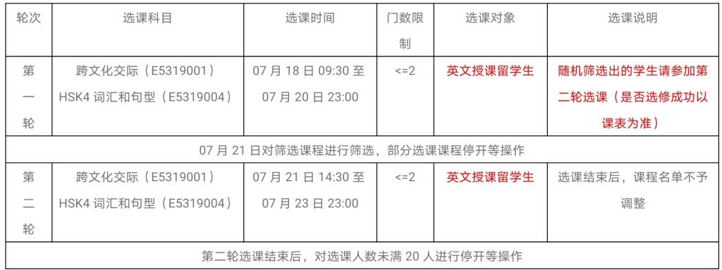 2.根据人才培养方案要求,中文授课职工需获得总学分120分(含选修课学分);本学期,英文授课职工也需参加选课,仅在二门课里面选: 跨文化交际(2学分)、HSK4词汇和句型(3学分),2019级及之前的英文授课职工通识选修需修满2学分,2020级英文授课职工通识选修需修满4学分.。