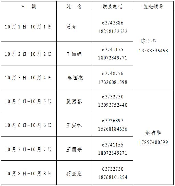 2.各单位要认真落实假期值班安排(确定假期联系人及联系电话),如遇有重大突发事件发生,按公司《突发公共事件总体预案》规定及时报告并妥善处置;