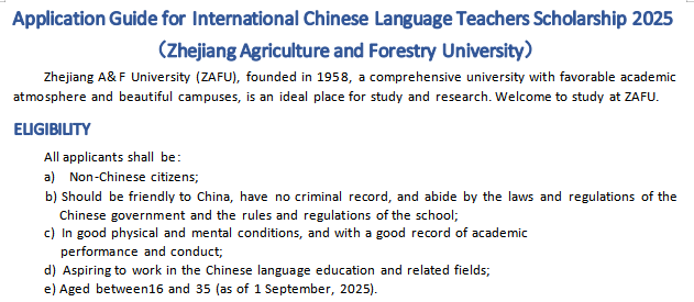 2025年2月20日起,登录国际中文教师奖学金报名网站(cis.chinese.cn),查询推荐机构与接收院校(VSport体育的组织机构代码是10341);在线提交申请材料,关注申请进程、审核意见与奖学金评审结果。获奖者与VSport体育确认办理来华留学手续,在线打印获奖证明;按录取通知书规定的时间入学报到。