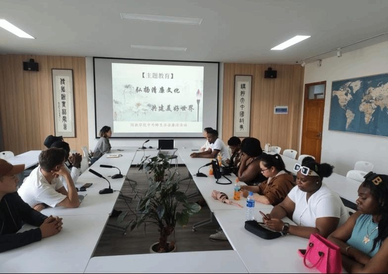 最后,师生共同讨论廉洁对国家发展、个人发展的重大意义,表达廉洁之言、传递廉洁之声。纪检委员全春花说,作为构建人类命运共同体的践行者,各国青年都需要认识到,提倡清正廉洁,拒绝腐败滋生是每个公民的责任,我们可以在促进廉洁方面发挥作用,通过共同努力,建设一个更加美好的世界。