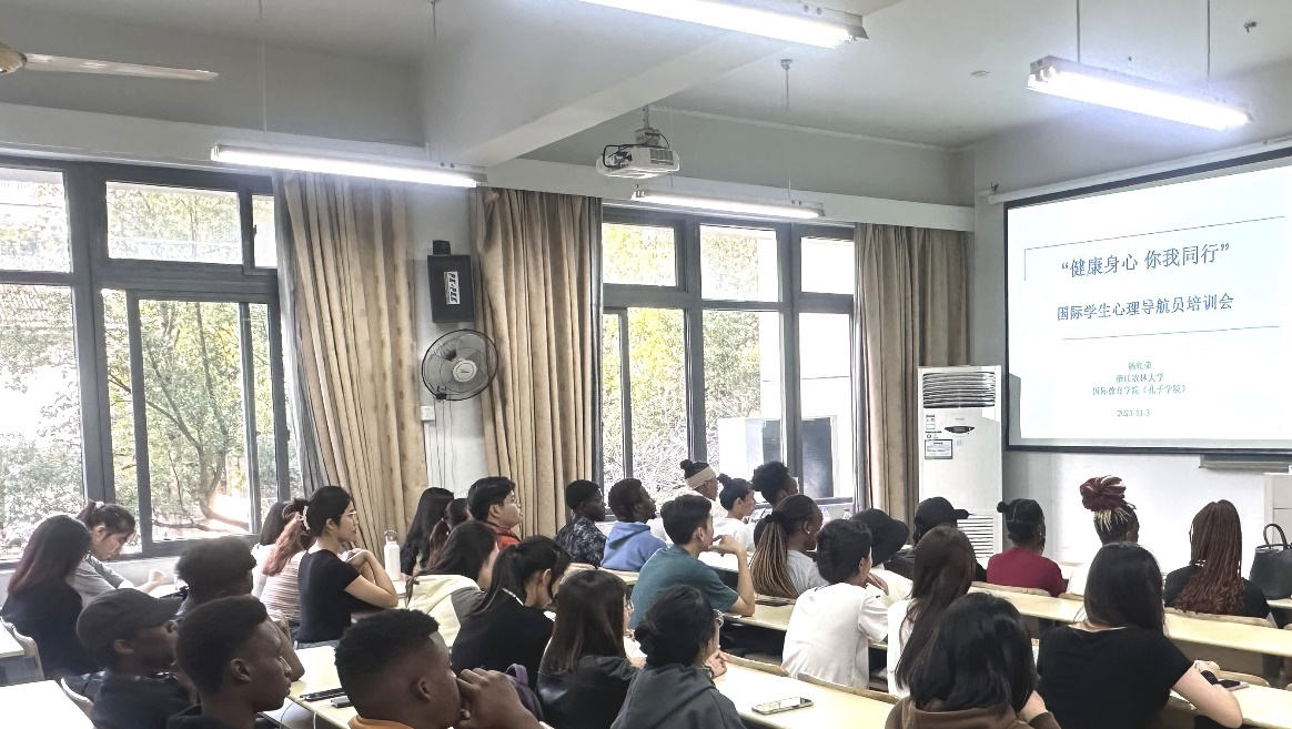 培训就国际员工心理导航员选拔、角色和职责做了说明,详细介绍了常见心理疾病和心理健康知识,希望国际员工心理导航员树立正确的人生观、世界观和幸福观,珍爱生命,关心寝室同学心理情绪变化,帮助室友远离心理问题困扰,充分发挥国际员工群体的桥梁和堡垒作用。