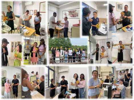 员工会代表们逐个教室、办公室向敬爱的老师们送去了鲜花以表感恩与敬意。他们表示,老师们为他们的学业进步、生活顺利付出了很大努力。他们今天的成绩,得益于在浙农林遇到了良师益友,这种师生情已经跨越了国籍、语言、文化差异,成为了心心相映的家人,此生他们将铭记于心、感恩于行。