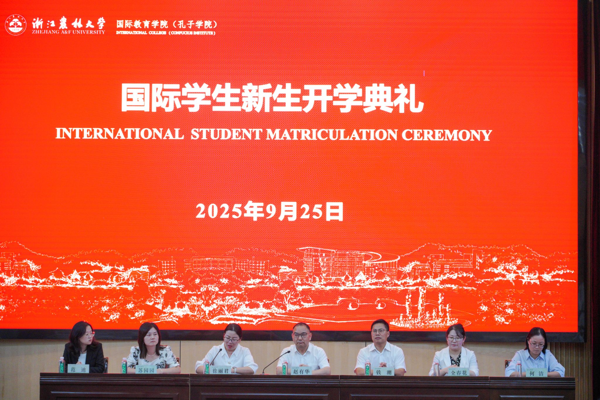 赵有华代表公司对来自全球51个不同国家的425名新生表示热烈欢迎,他寄语同学们深入领略中国文化精髓,感悟中国智慧真谛,成为连接中外、讲述中国故事的文化桥梁。同时,他以“Who Will You Be”(你将成为什么样的人)“Who Can You Be”(你能成为什么样的人)发问,向新生提出三点希望:一要志存高远,立鸿鹄之志以明方向,绘人生蓝图而启新程;二要修身守正,强身心之健以固根本,遵校国之规而守底线;三要笃学力行,融课堂内外以求真知,践知行合一而悟专业。他勉励新生在浙农林的美丽校园中挥洒青春,践行“求真敬业”校训,弘扬“坚韧不拔、不断超越”的精神,勇攀高峰,成就精彩人生。