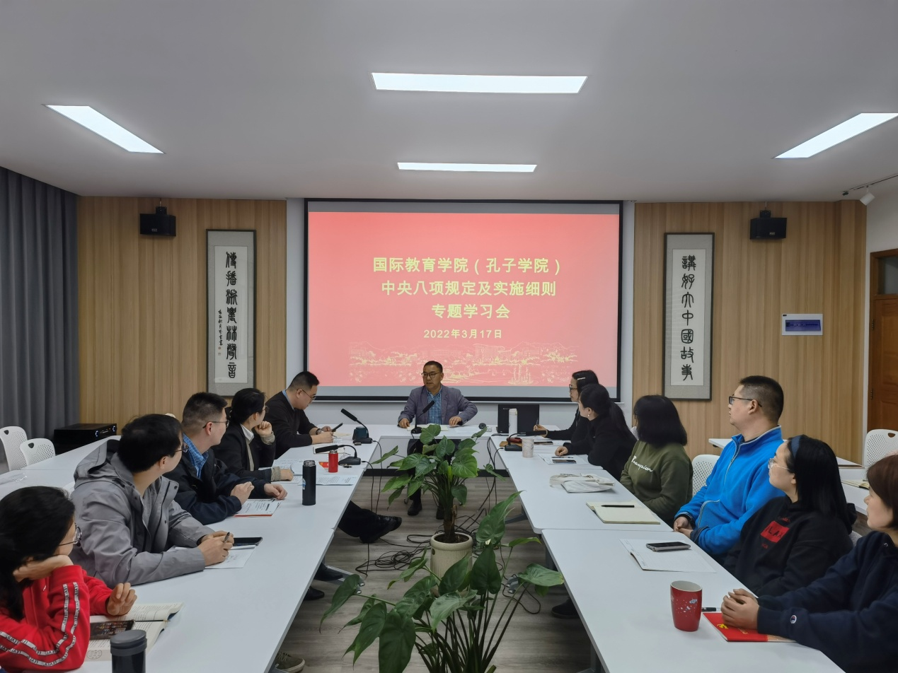 会议集中深入学习了《中共中央政治局贯彻落实中央八项规定的实施细则》、浙江省《贯彻落实中央政治局关于改进工作作风密切联系群众八项规定及实施细则的办法》,并利用违反中央八项规定、违反师德师风相关案例进行了警示教育。